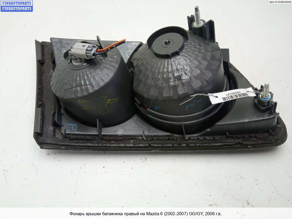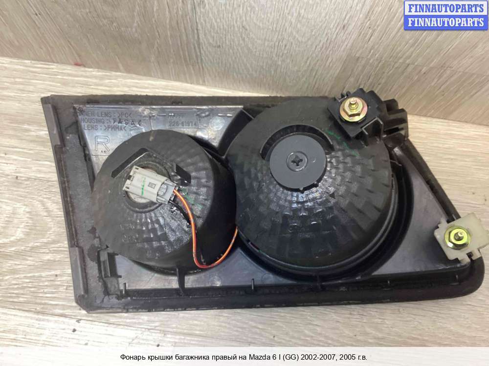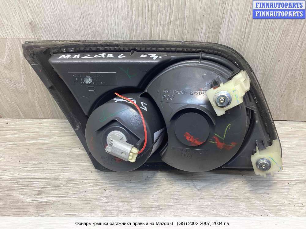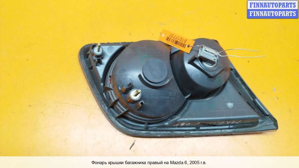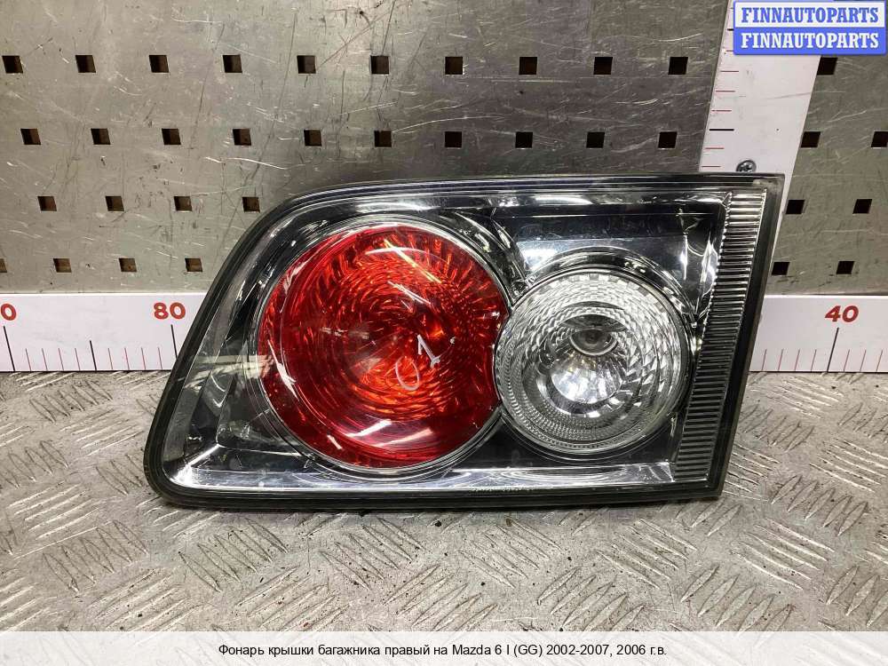 Компания FINNAUTOPARTS занимается продажей контрактных (б/у, бывших в употреблении) запчастей для иномарок. В нашей компании продаются только оригинальные запчасти из Европы, Японии и Кореи, которые не имеют пробега по РФ. Если вы хотите приобрести фонарь крышки багажника (правый) для а/м Мазда 6 GG, смело обращайтесь в нашу компанию. Все наши менеджеры — профессионалы своего дела, и с удовольствием помогут вам купить запчасти, в том числе, фонари крышки багажника правые, на Mazda 6 I (GG) и другие автомобили.