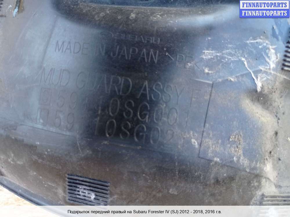 2014; Бензин; 2.5; FB25, Инжектор; Джип (5 дв.); ; ; ; серебристый; 2014, 2.5л, Бензин, Инжектор, FB25, 59110SG000, Джип (5-дверный), серебристый, перед., правая, Фото не актуально, с запчасти отделены: Защита арок (подкрылок), порван, сломана,, порван, сломана