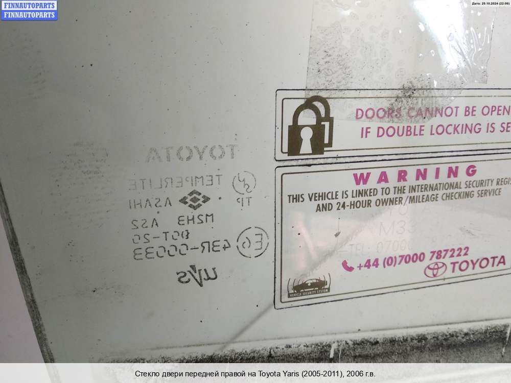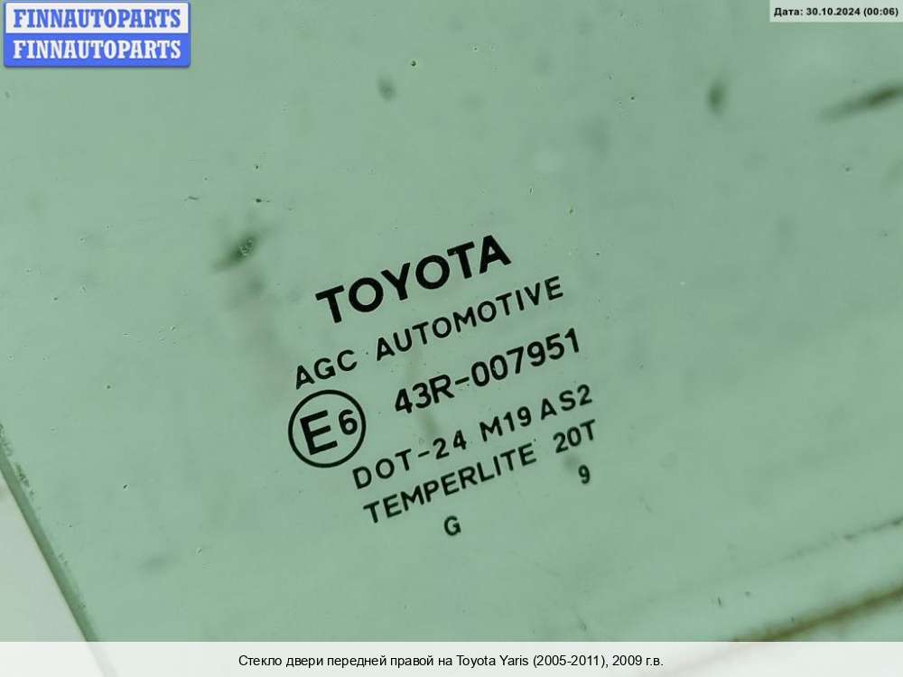 стекло двери передней правой | Toyota Yaris 2 (2005 - 2011) |