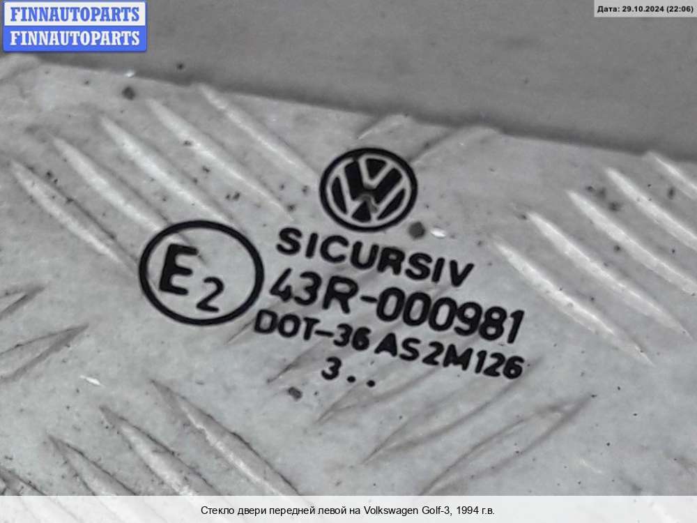 стекло двери передней левой | VOLKSWAGEN Golf 3 |