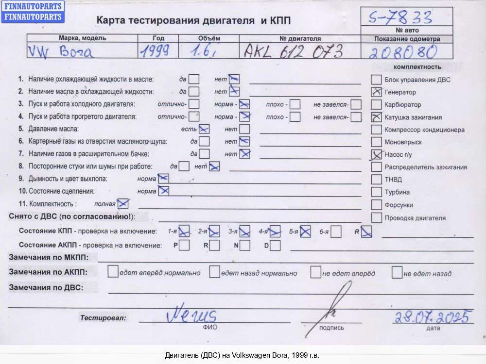 Омск | 1999 | 06A100105MX, 06A100105NX, 1999, 1.6л, Бензин, Инжектор, APF, APF023427, 06A100105MX, /, 06A100105NX, Универсал, черный, Фото не актуально, с запчасти отделены: Компрессор кондиционера, Катушка зажигания, Натяжитель приводного ремня, Генератор, Насос гидроусилителя руля (ГУР), APF023427 | 13,5-12-12,5-12 | С, прокручивается, состояние ГРМ - нормально, поддон - нормально, клапанная крышка - нормально, эмульсия - нет, | |||