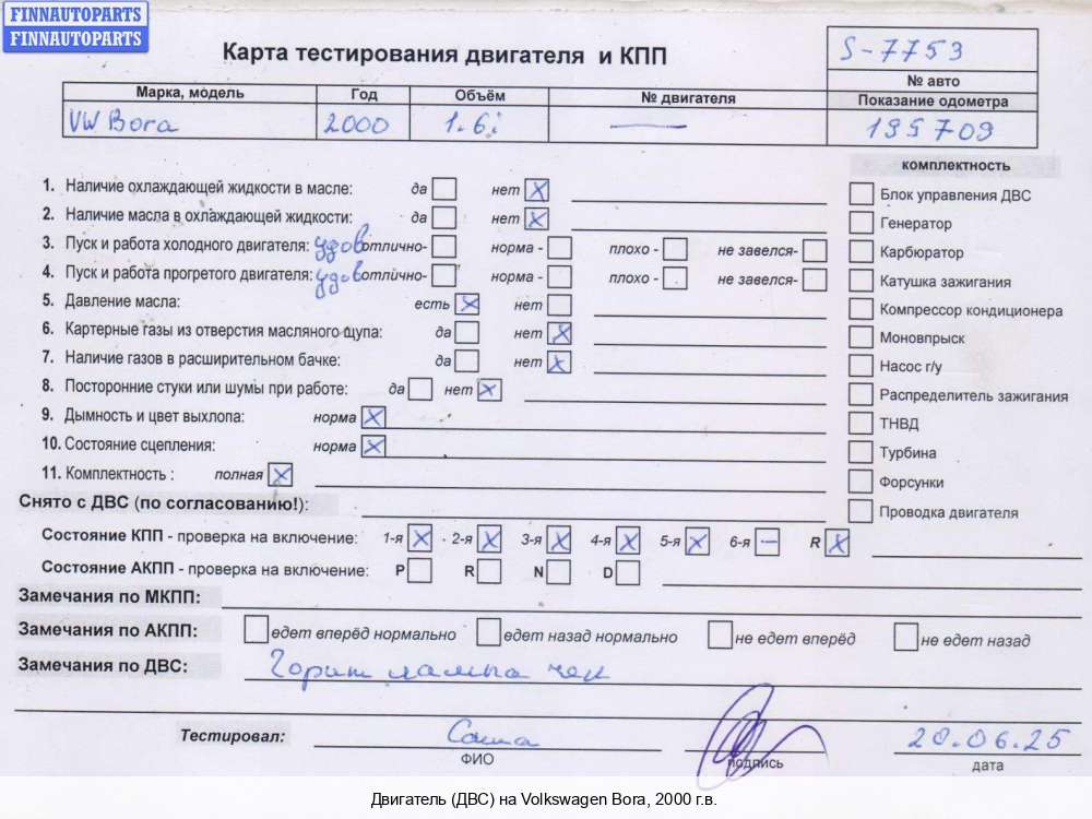Алматы (KZ) | 2003 | 038100040D, 038100098JX, 2003, 1.9л, Дизель, TDI, ATD, ATD622211, 038100040D, 038100098JX, Седан, серебристый, Фото не актуально, с запчасти отделены: Датчик положения распредвала, Компрессор кондиционера, Датчик положения коленвала, Турбина, Патрубок интеркулера, Патрубок корпуса воздушного фильтра, ATD622211 | - | Г | К | Н, прокручивается , состояние ГРМ - нормально, поддон - нормально, клапанная крышка - нормально, эмульсия - нет, сломан щуп, | |||