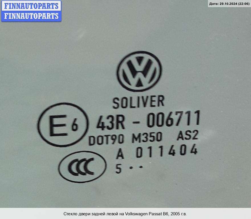 Компания FINNAUTOPARTS занимается продажей контрактных (б/у, бывших в употреблении) запчастей для иномарок. В нашей компании продаются только оригинальные запчасти из Европы, Японии и Кореи, которые не имеют пробега по РФ. Если вы хотите приобрести стекло боковое (заднее левое) для а/м Фольксваген Пассат Б6, смело обращайтесь в нашу компанию. Все наши менеджеры — профессионалы своего дела, и с удовольствием помогут вам купить запчасти, в том числе, стекла боковые задние левые, на Volkswagen Passat B6 (3C) и другие автомобили.