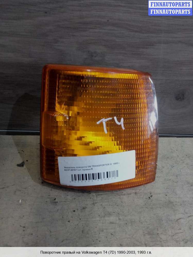 Компания FINNAUTOPARTS занимается продажей контрактных (б/у, бывших в употреблении) запчастей для иномарок. В нашей компании продаются только оригинальные запчасти из Европы, Японии и Кореи, которые не имеют пробега по РФ. Если вы хотите приобрести передний поворотник (правый) для а/м Фольксваген Транспортер Т4, смело обращайтесь в нашу компанию. Все наши менеджеры — профессионалы своего дела, и с удовольствием помогут вам купить запчасти, в том числе, передние поворотники правые, на Volkswagen Transporter T4 и другие автомобили.